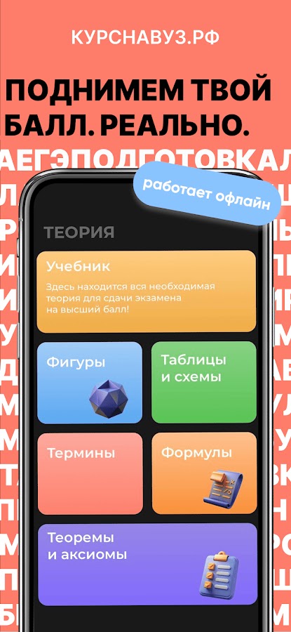 В приложении есть все необходимое для подготовки к ЕГЭ для базового и профильного уровней.