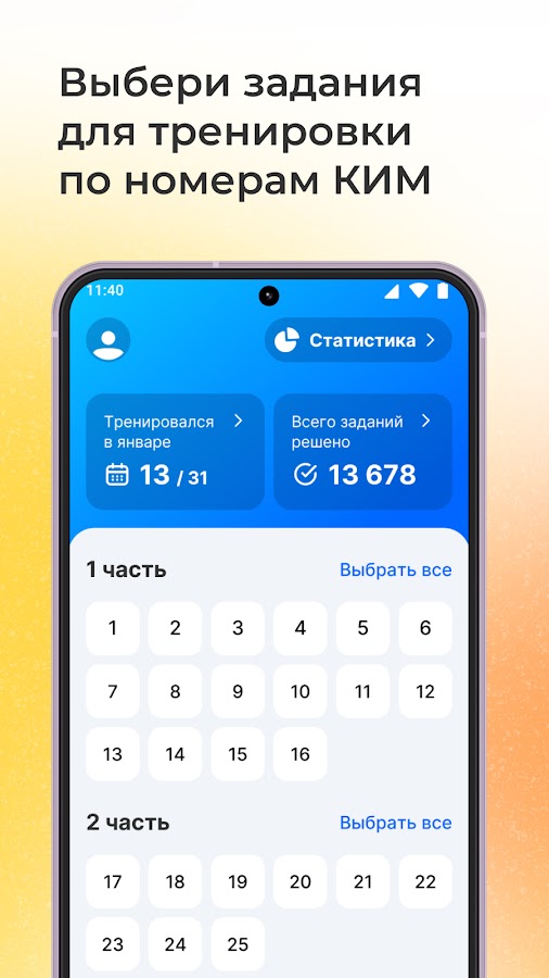 — Следить за своим прогрессом: Используйте раздел статистики для мониторинга своих достижений и выявления слабых мест.