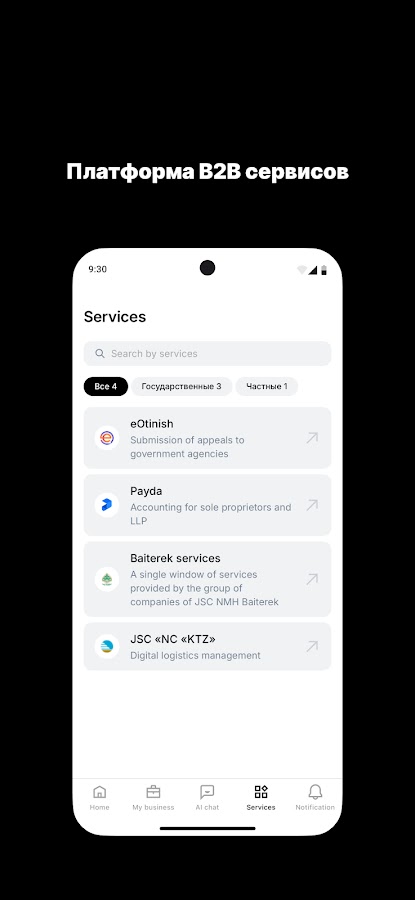 Приложение также предоставляет доступ к программам гос. поддержки и внешним сервисам, что делает eGov Business универсальным инструментом для управления бизнесом.