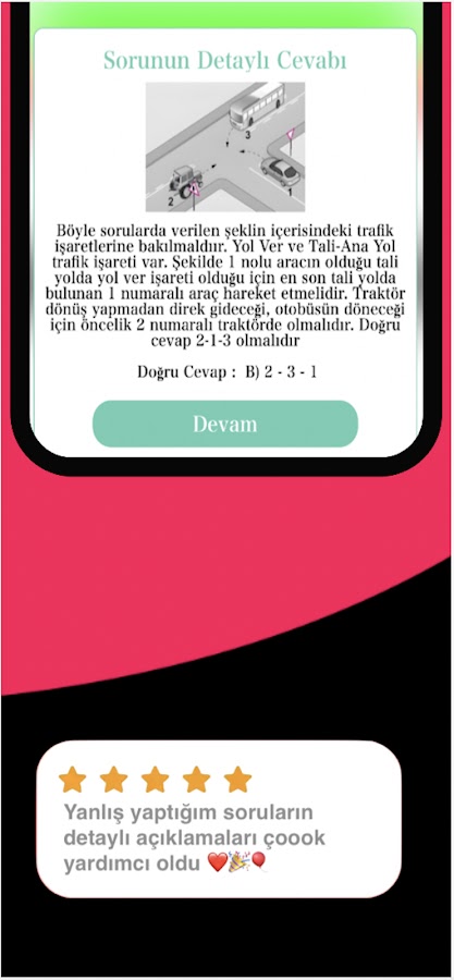 📚 Обширная база вопросов: Более 4000 вопросов из прошлых экзаменов с подробными объяснениями позволяют EhliyetCepte обеспечить детальную подготовку, охватывающую все аспекты экзамена. Мы предоставляем вам актуальные вопросы, публикуя один экзаменационный вопрос каждый день, например, «Вопросы к экзамену на водительские права 2023».