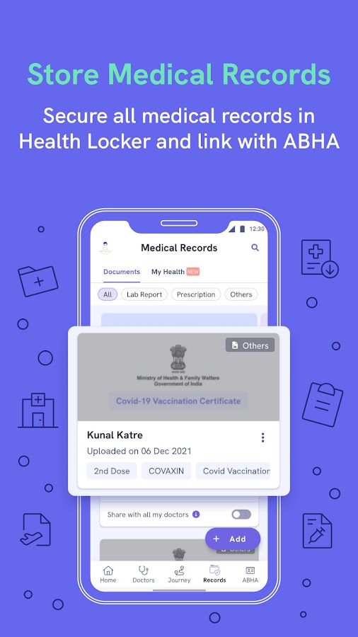 Eka Care excels in providing a comprehensive Personal Health Records (PHR) app that helps you maintain detailed medical and health records. This includes storing prescriptions, health and medical reports, vaccine certificates, and more. The app allows you to create individual health profiles for each family member, facilitating seamless management of all members’ medical and health records within a single application. These meticulously maintained records are instrumental in monitoring your health history, facilitating early diagnosis of health issues, and can be effortlessly shared with healthcare professionals to ensure efficient and accurate healthcare management.