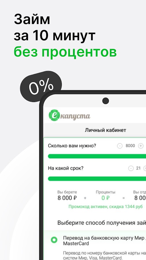 Займы онлайн с еКапуста, под 0% — для новых клиентов, без справок и поручителей.