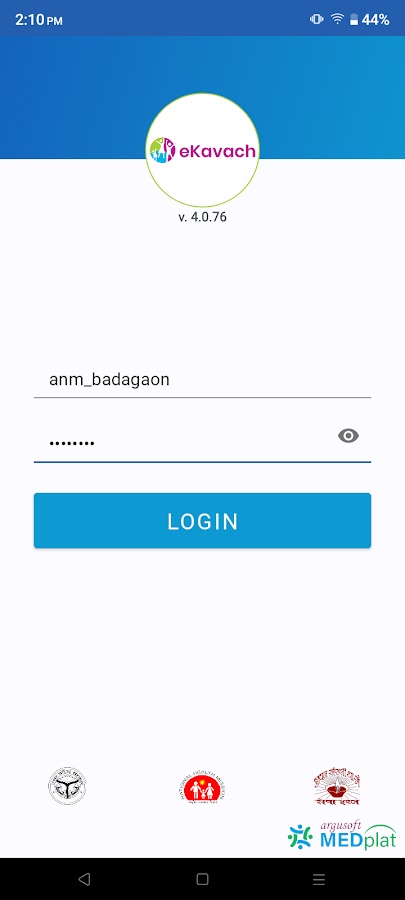 eKavach — это приложение CPHC, выпущенное и внедренное NHM, штат Уттар-Прадеш, для использования работниками ASHA, ANM, ASHA Sangini и CHO. Приложение основано на платформе MEDPlat с открытым исходным кодом и сертифицированной DPG компании Argusoft. Функции включают в себя полный рабочий процесс и направление в службы «Семейная папка», «RMCH+», «НИЗ», «Питание» и другие медицинские услуги.