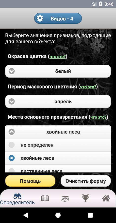 Бесплатная версия приложения обладает полным функционалом, за исключением Определителя. Также все иллюстрации в ней черно-белые