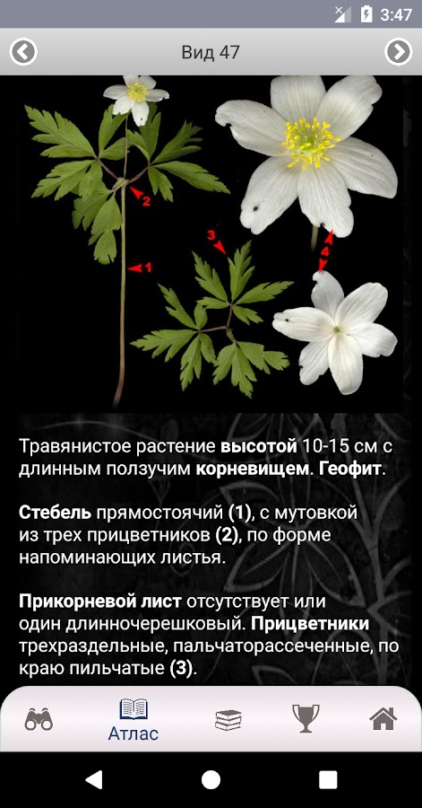 Атласом можно пользоваться и независимо от определителя – просматривать описания и изображения видов, а также описания и состав семейств и классов травянистых растений.