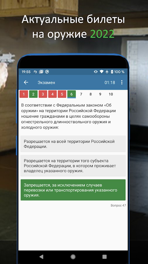 Эффективное приложение для подготовки к сдаче теоретического экзамена на Безопасное обращение с оружием БОО (включая обновленный закон «Об оружии» (150-ФЗ)).
