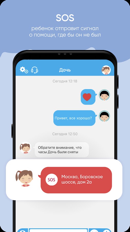 • Получать SOS-сигналы с часов в экстренных случаях: вместе с сигналом вы получите данные о геопозиции ребенка, а также аудиозапись с микрофона часов.