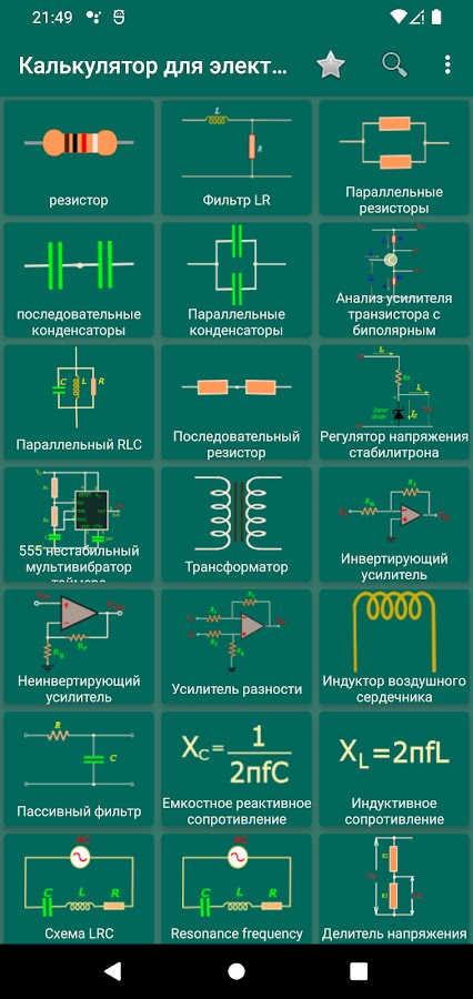 Electrocal: Circuit Calculator — мощное приложение для расчёта электронных схем, созданное для студентов, инженеров, техников и радиолюбителей. Оно обеспечивает быстрые и точные расчёты, помогая уверенно анализировать, проектировать и понимать электронные схемы.