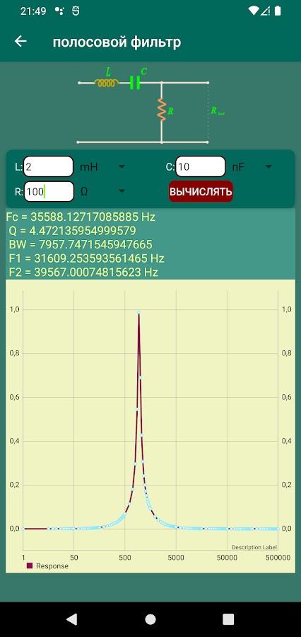 • Калькуляторы фильтров RC, RL, полосового и режекторного