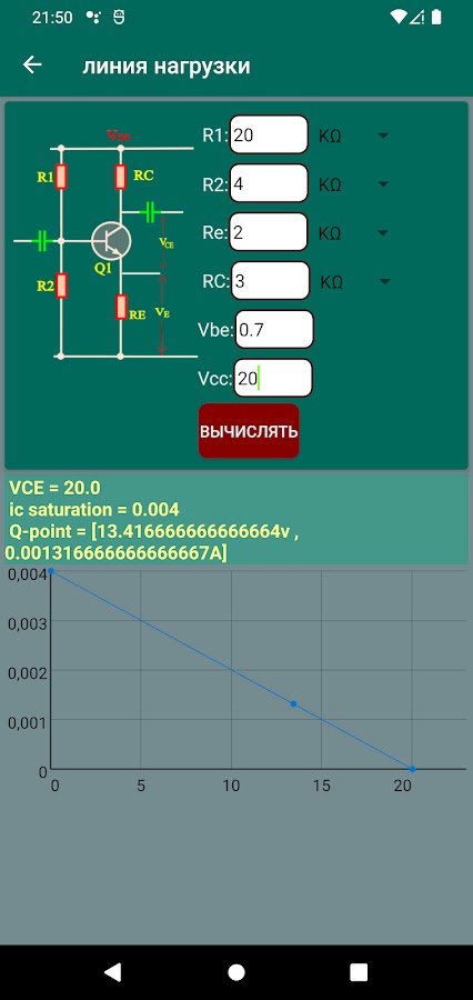 • Анализ нагрузочной прямой транзистора в схеме ОЭ (CE) с построением графика