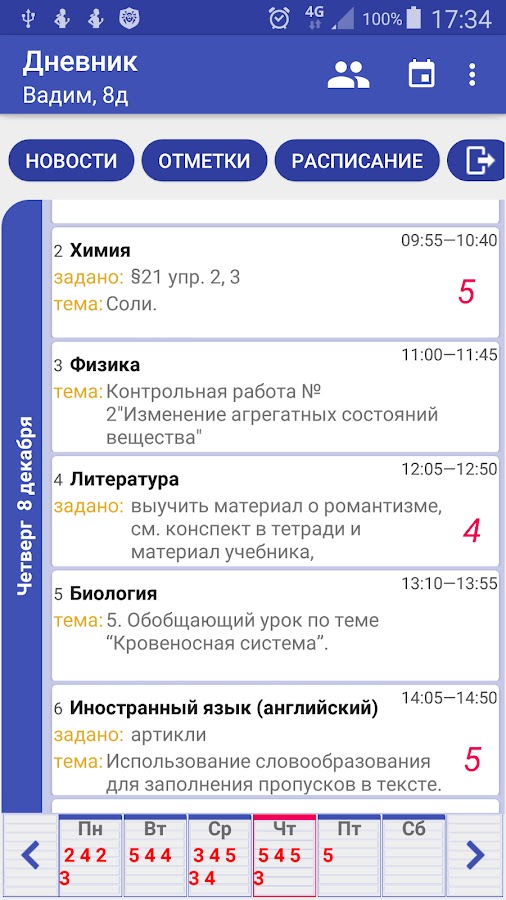 Вся информация доступна даже при отсутствии Интернет соединения (в том случае, если Электронному дневнику удалось предварительно скачать данные).