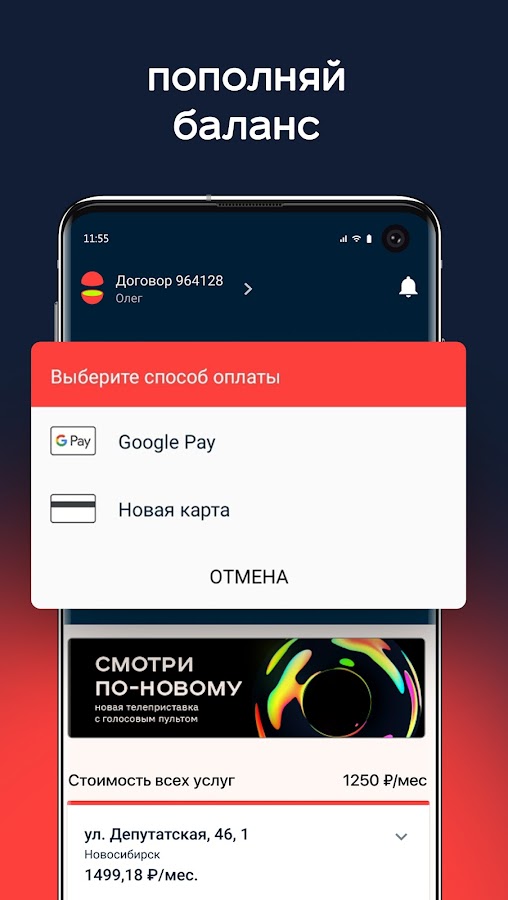 — Пополнение счета с помощью карт VISA/MasterCard/МИР, а также СБП