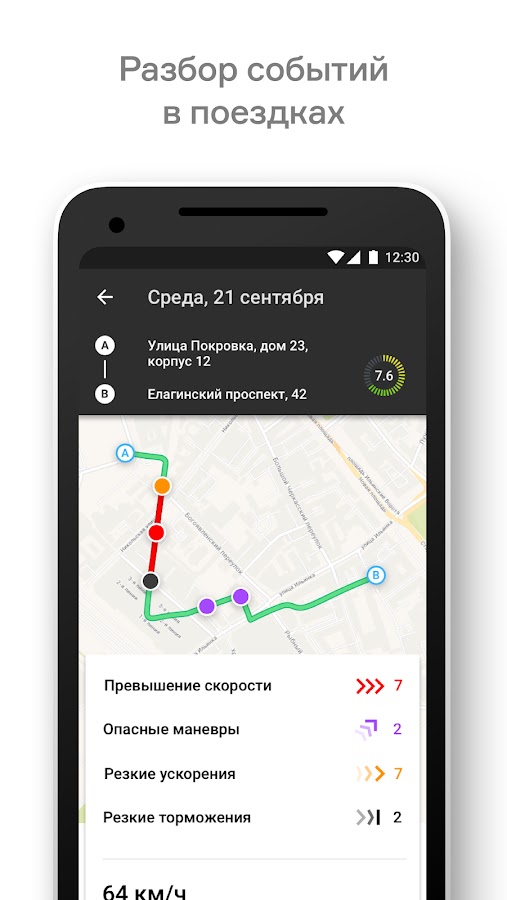 Получайте обратную связь о манере своего вождения в понятном и интуитивном интерфейсе: чем выше ваша оценка, тем ниже стоимость полиса КАСКО;