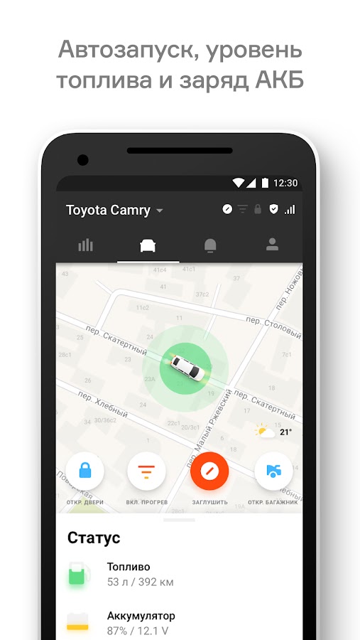 Управляйте автомобилем удаленно, Элемент позволяет открывать и закрывать двери, управлять автозапуском, ставить автомобиль в режим охраны;