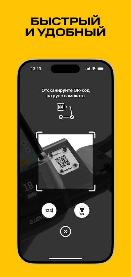 • Отсканируйте QR‑код на руле, выберите тариф и нажмите «Старт».