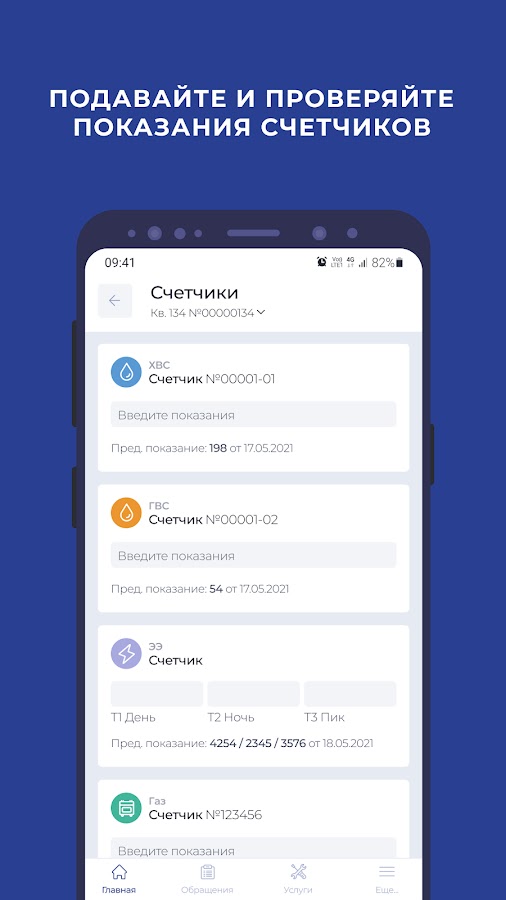 • Подавать показания приборов учета