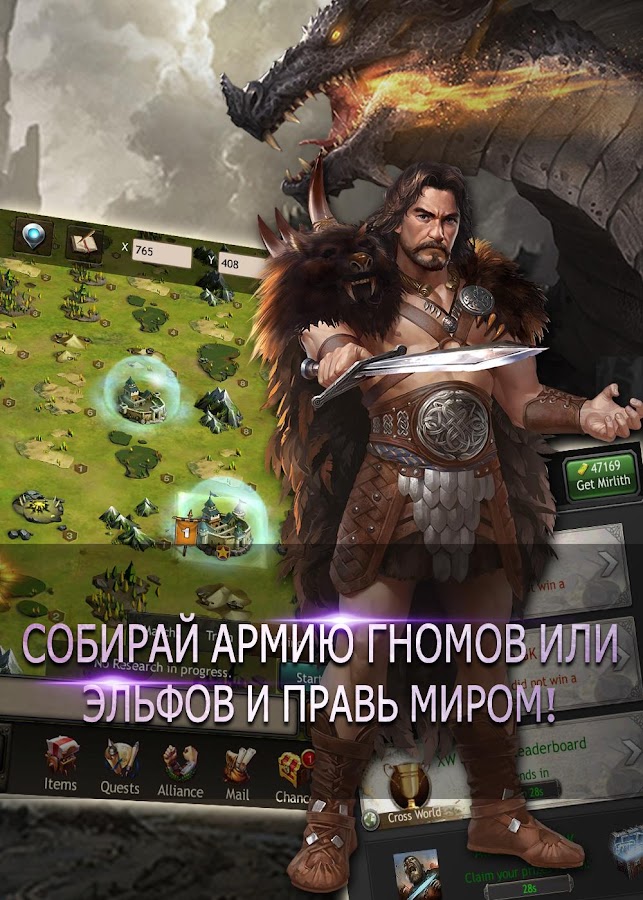 Битва только началась! ИГРАЙТЕ БЕСПЛАТНО и присоединяйтесь к миллионам игроков по всему миру в сражении со злом! Собирайте друзей, формируйте Альянсы и занимайте первые строчки таблиц лидеров. Играйте за гномов или эльфов на выбор и ведите их к неоспоримому могуществу.