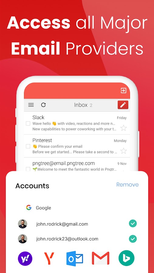 ЛЕГКО ОРГАНИЗОВАТЬ — Группировка сообщений и быстрый ответ из уведомлений. Доступ к ярлыкам запуска для поиска во всех почтовых ящиках или для создания нового сообщения. Легко переключаться между Hotmail, Office 365, Gmail, MS Outlook и т. Д. Или любой другой поставщик учетной записи электронной почты.