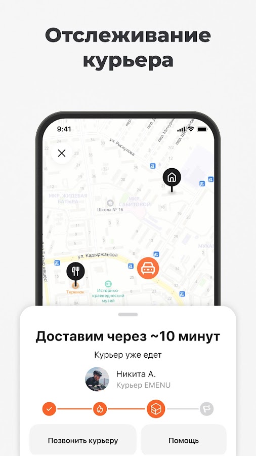 Теперь вы всегда знаете, где ваш курьер! В EMENU 3.0 можно отслеживать доставку на карте и получать push-уведомления о каждом этапе выполнения заказа.