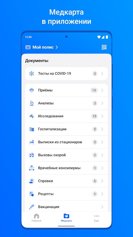 Приложение ЕМИАС.ИНФО предоставляет запись к врачам в городские поликлиники Москвы и доступ к своей электронной медкарте.