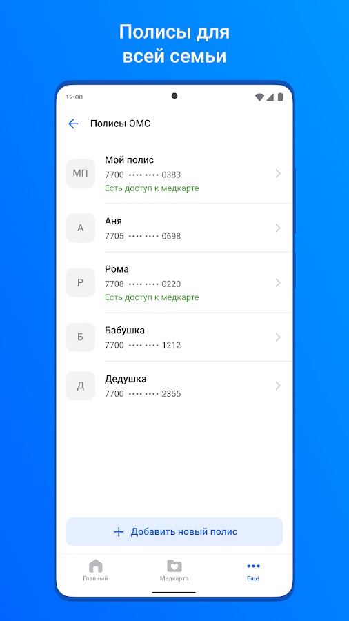 — возможность подключить несколько полисов ОМС.