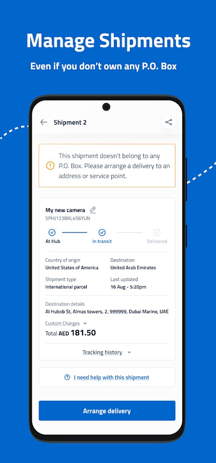 Emirates Post — официальный поставщик почтовых услуг ОАЭ. Благодаря своим надежным и эффективным решениям для почтовой и транспортной почты Emirates Post продолжает помогать преодолевать расстояния, соединять людей и расширять возможности бизнеса. Его обширная сеть из более чем 85 центров обслуживания клиентов, дополненная более чем 800 точками взаимодействия с клиентами по всему ОАЭ, отражает его непоколебимую приверженность предоставлению исключительного обслуживания всем своим клиентам.