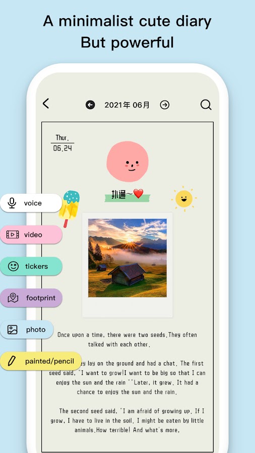 Путешествуйте по своему маленькому миру с самодельными смайликами + текстом. Приходите и запишите свою жизнь с дневником EMMO.