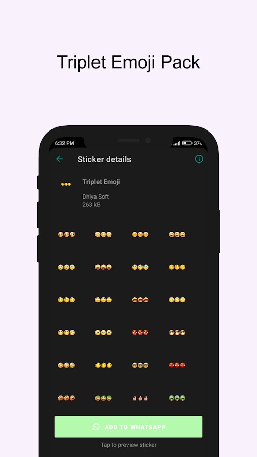 ✅ Добавьте наборы наклеек по вашему выбору в приложение для чата WA. (Просто нажмите на значок + рядом с каждым набором наклеек)