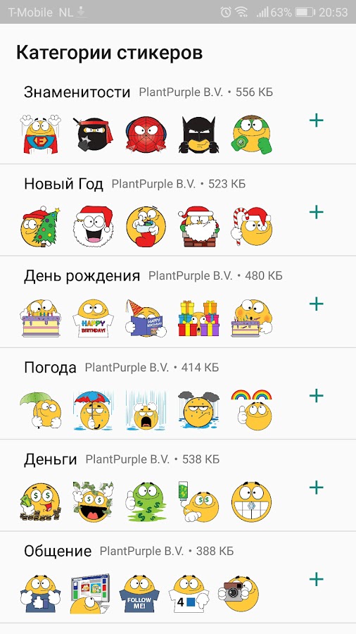 1. Нажмите значок «+» рядом с категорией наклеек, которую вы хотите добавить и подтвердите.