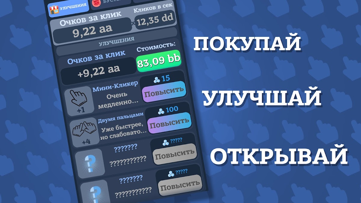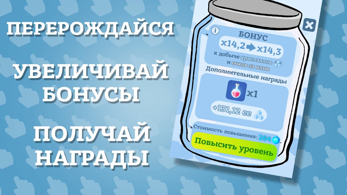 • Бесконечный прогресс — кликай, чтобы становиться сильнее