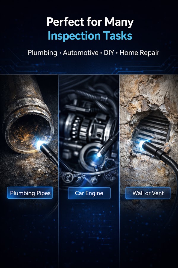 Бороскоп или эндоскоп имеют множество применений, например, в случае забитых сливов вы можете увидеть, что внутри. Вам больше не понадобится камера для очистки стоков или камера для ремонта сантехники. Она работает как камера для канализации, и вы можете использовать ее с любой внешней камерой, например, с веб-камерой.