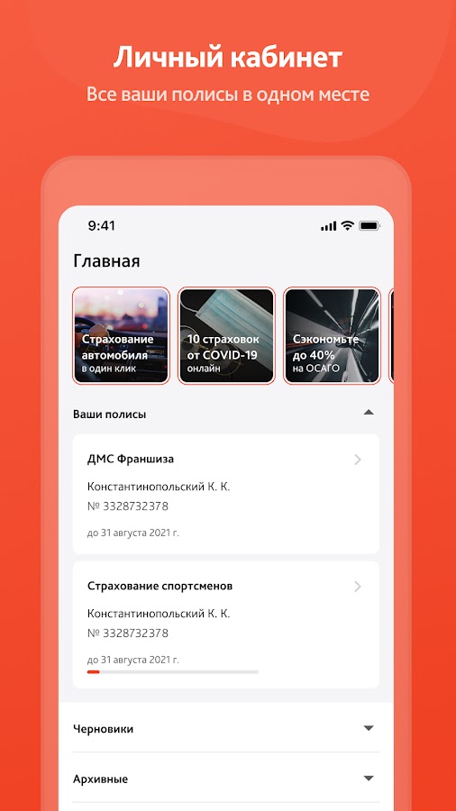 Теперь вся информация по имеющимся у Вас полисам компании будет всегда под рукой!