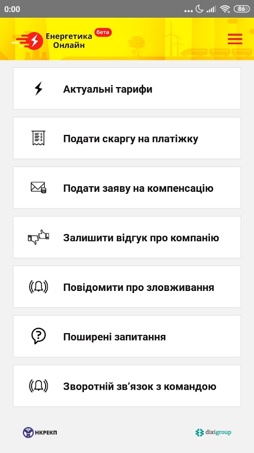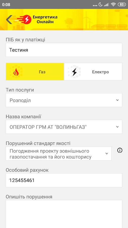3. «Подать заявление на компенсацию» позволяет подать жалобу в энергокомпанию в сфере газа и электроэнергии за некачественно предоставленные услуги или в НКРЭКУ о непредоставлении компенсации поставщиком.