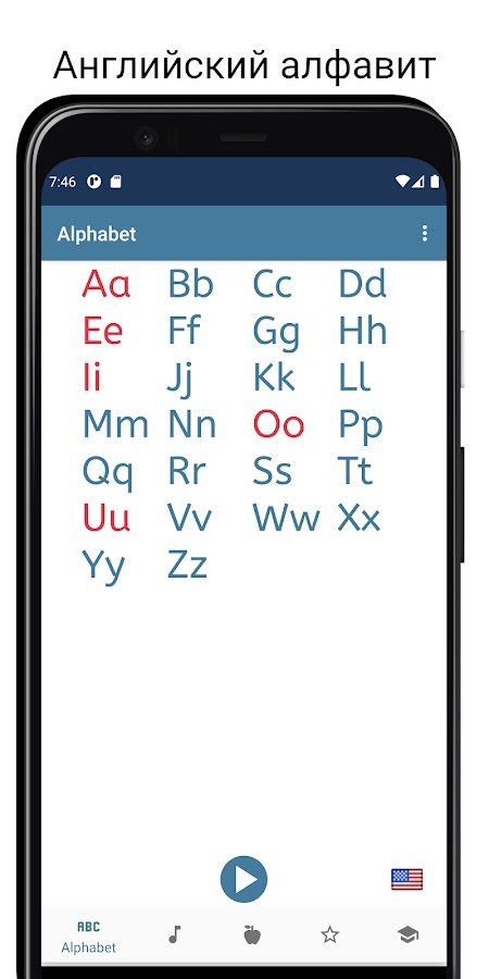 Это приложение поможет вам выучить английский алфавит.