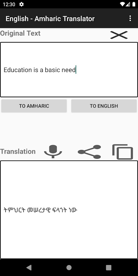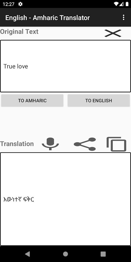 Изучение амхарского языка или посещение такой страны, как Эфиопия, в которой говорят на амхарском? Упростите свое обучение / общение, переведя любое английское или любое другое языковое слово / предложение на амхарский.