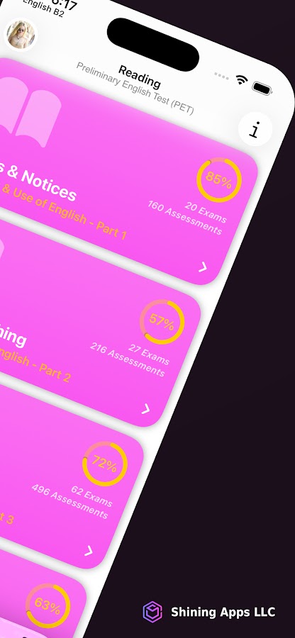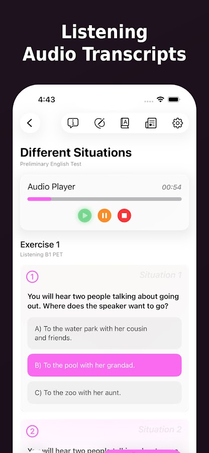 Мы предлагаем больше тренировочных экзаменов и учебных материалов, чем любое другое приложение или веб-сайт, охватывая весь уровень B1 PET.
