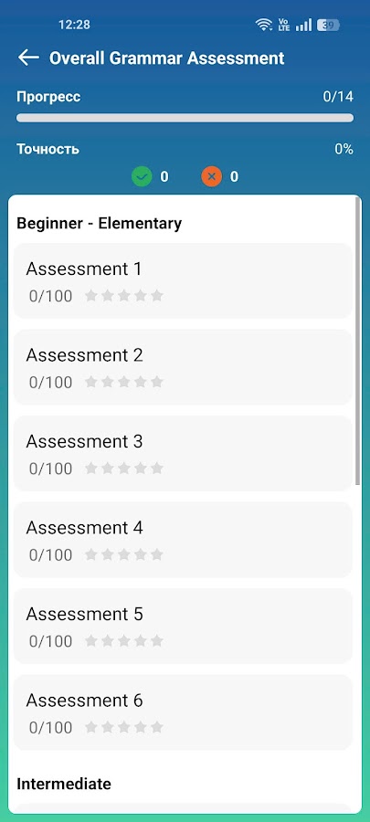 Наши тесты разделены на четыре уровня: начинающий, элементарный, средний и выше среднего, чтобы каждый мог выбрать подходящий вариант.