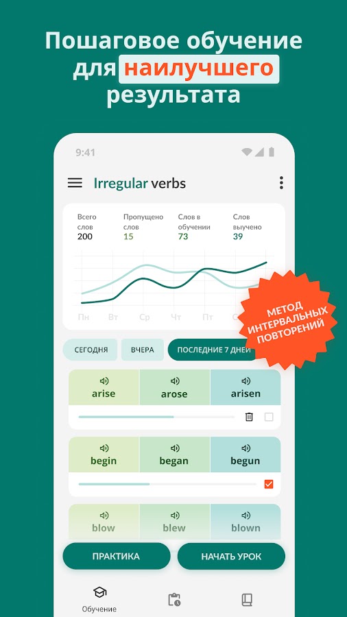 ✔ Интервальные повторение для лучшего запоминания и прогресса