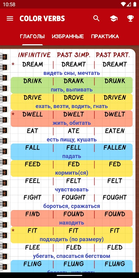 Скачайте приложение Неправильные глаголы English для Android бесплатно - последняя версия (7.0.1) уже доступна для установки на ваш телефон или планшет.