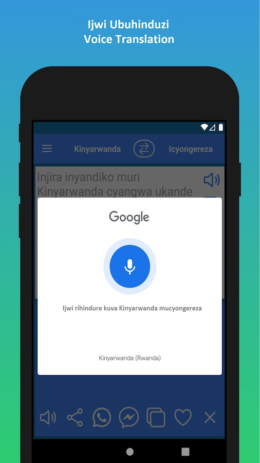 ✓ 3. Голосовой ввод на английском языке. Голосовой перевод с английского на киньяруанда.