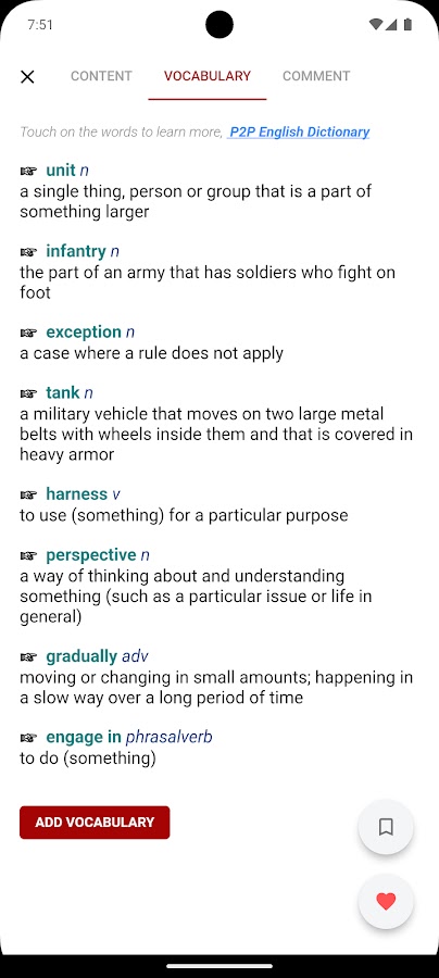 — К каждому уроку прилагается аудио, видео, стенограмма и список словарного запаса, которые помогут вам улучшить свои навыки английского языка и расширить свой словарный запас всего за 6 минут каждый день.