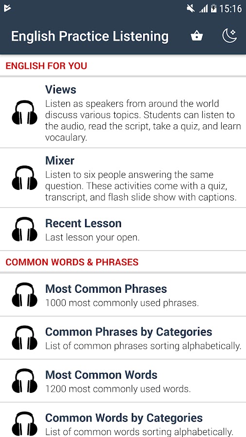 English Listening Practice — бесплатное приложение для изучения английского языка. Практика аудирования английского языка содержит уроки, в которых особое внимание уделяется английскому произношению и повседневному языку.