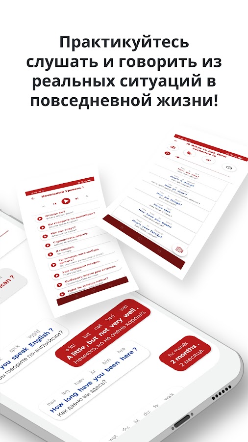Благодаря этому приложению, вы не только научитесь говорить, произносить, интонировать, как носитель языка и улучшить навыки восприятия на слух, но сможете также выучить группы слов и полезные фразы, чтобы спрашивать и отвечать в повседневной жизни.