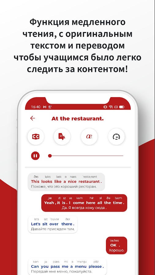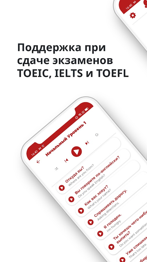 Наслаждайтесь практикой английского даже во время вождения или путешествий …, просто откройте приложение и включите режим плейлист.