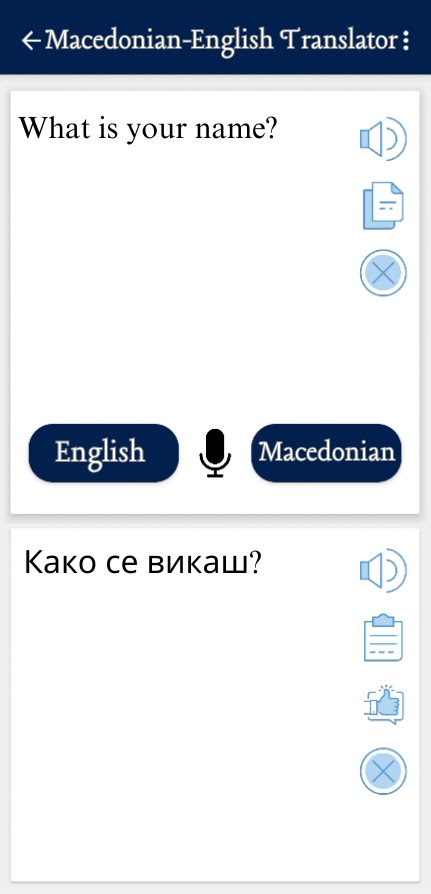 В переводе с македонского на английский и с английского на македонский вы можете переводить текст и голос.