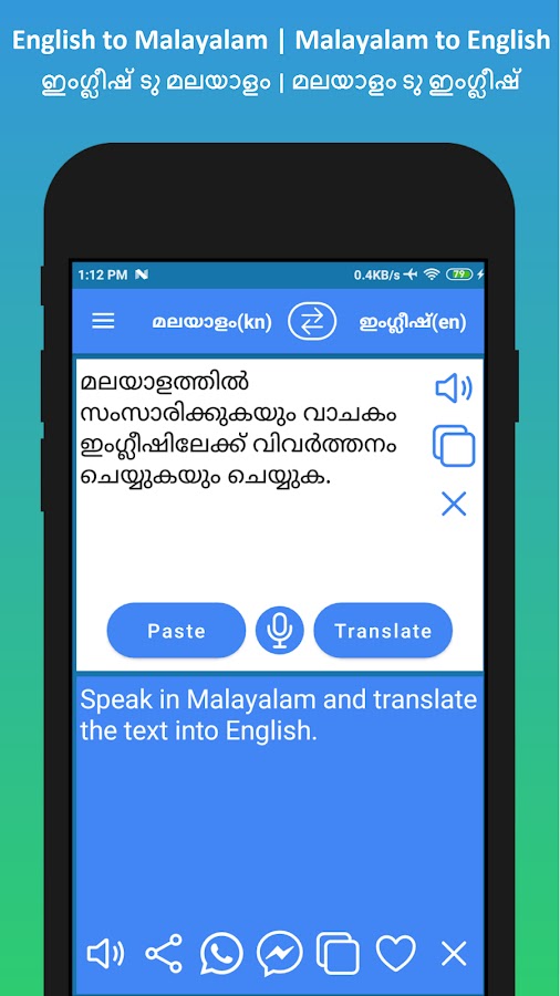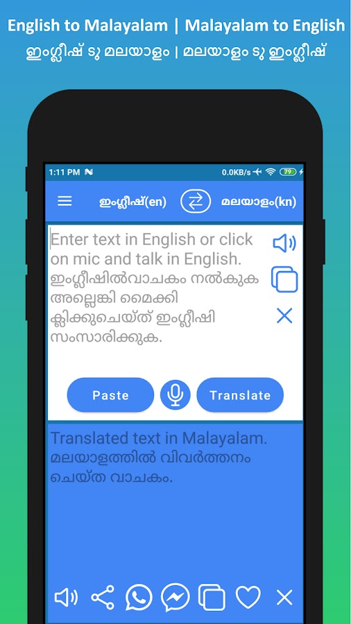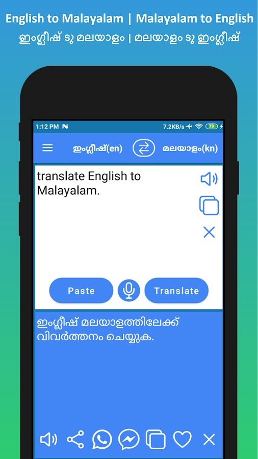 А) Нажмите кнопку «Вставить», и наше приложение «Переводчик с английского на малаялам» переведет текст.