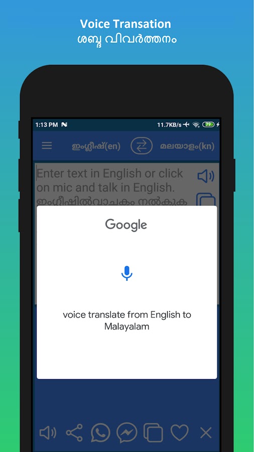 ✓ 4. Голосовой ввод на малаялам. Голосовой переводчик с малаялама на английский.