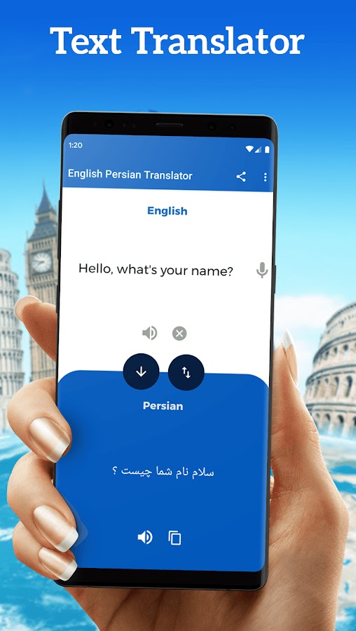 Вы изучаете персидский или хотите изучать английский, вам нужно начать использовать это приложение для перевода языка, которое поможет вам переводить персидский текст и голос на английский или переводить английский текст и голос на персидский. Перевести персидский на английский бесплатно.