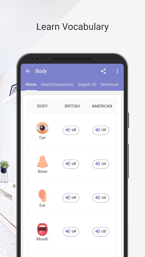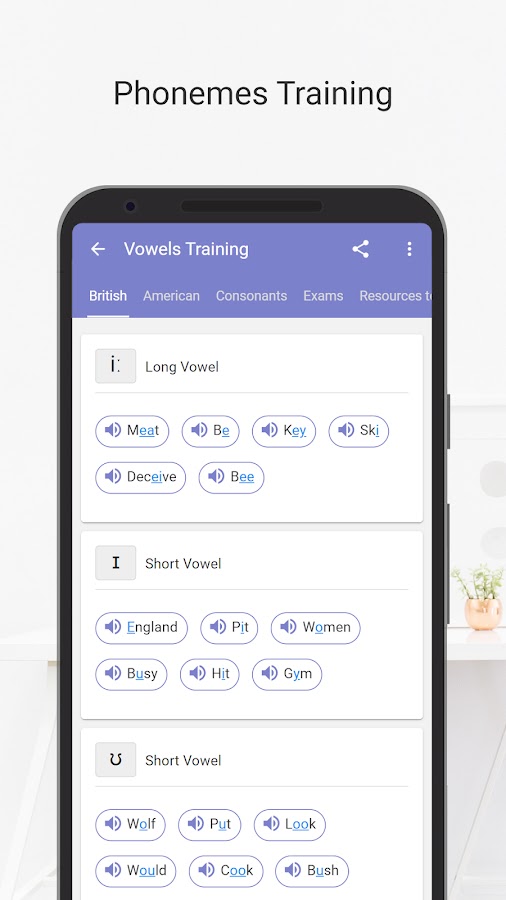 Learn English Pronunciation, Vocabulary and Phonetics offline and free. Phonemic Chart, Alphabet, Audios, Language Rules, Resources to Download, Exercises, Exams and more to improve your Speaking skills.