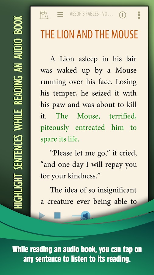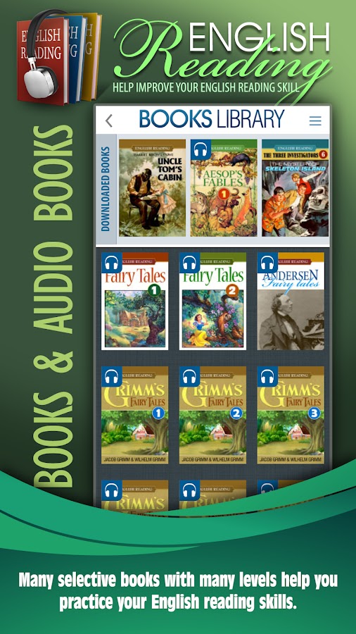 Английский Book Reader поможет вам улучшить свой английский навык чтения. Он также поддерживает аудио-книгу, которые позволяют выявить любое предложение, чтобы услышать, как он говорит.